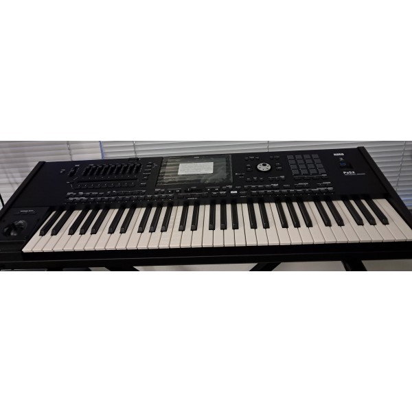 Teclado da marca Korg, modelo PA 5X, de 61 teclas. Instrumento novo.